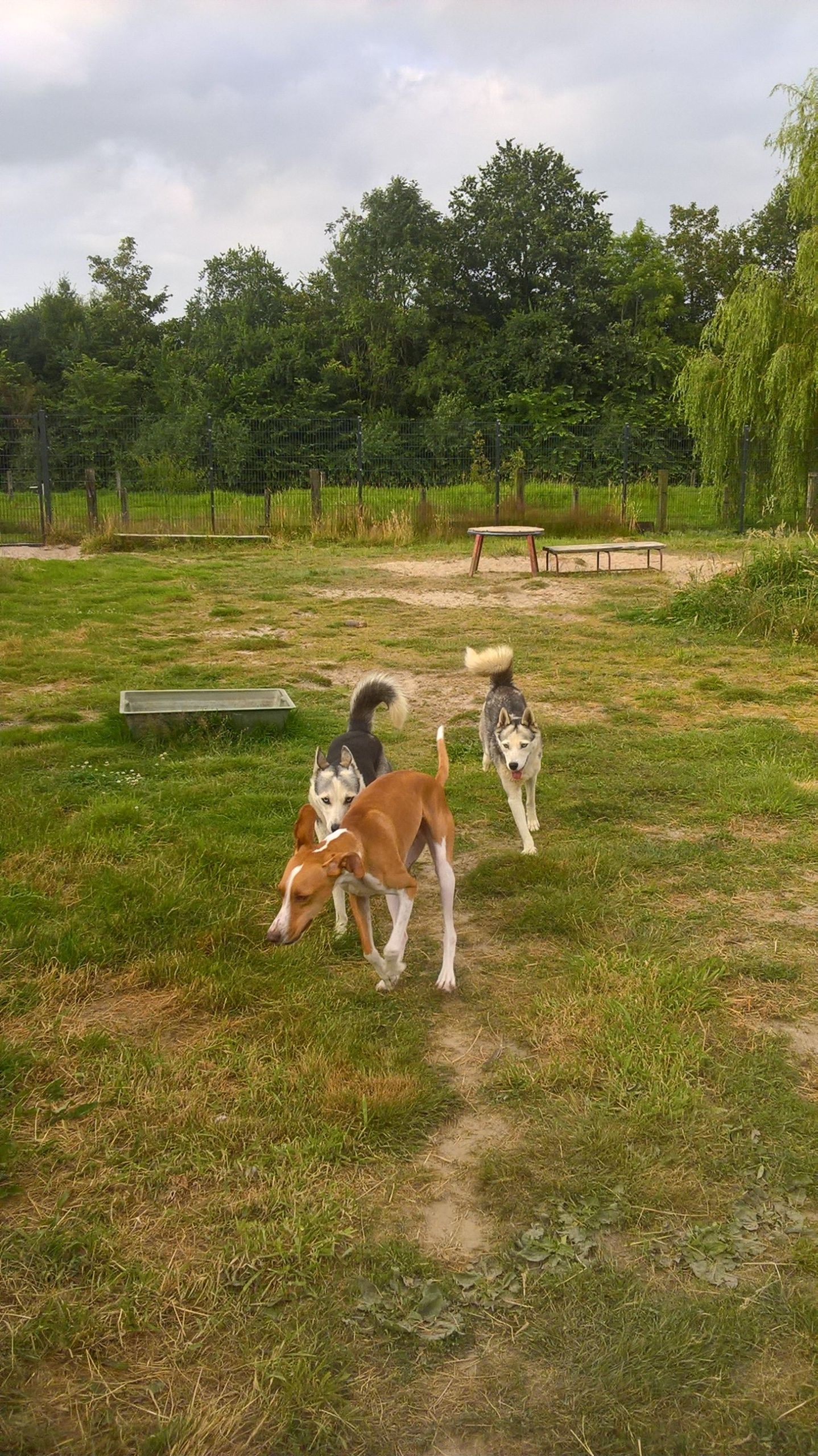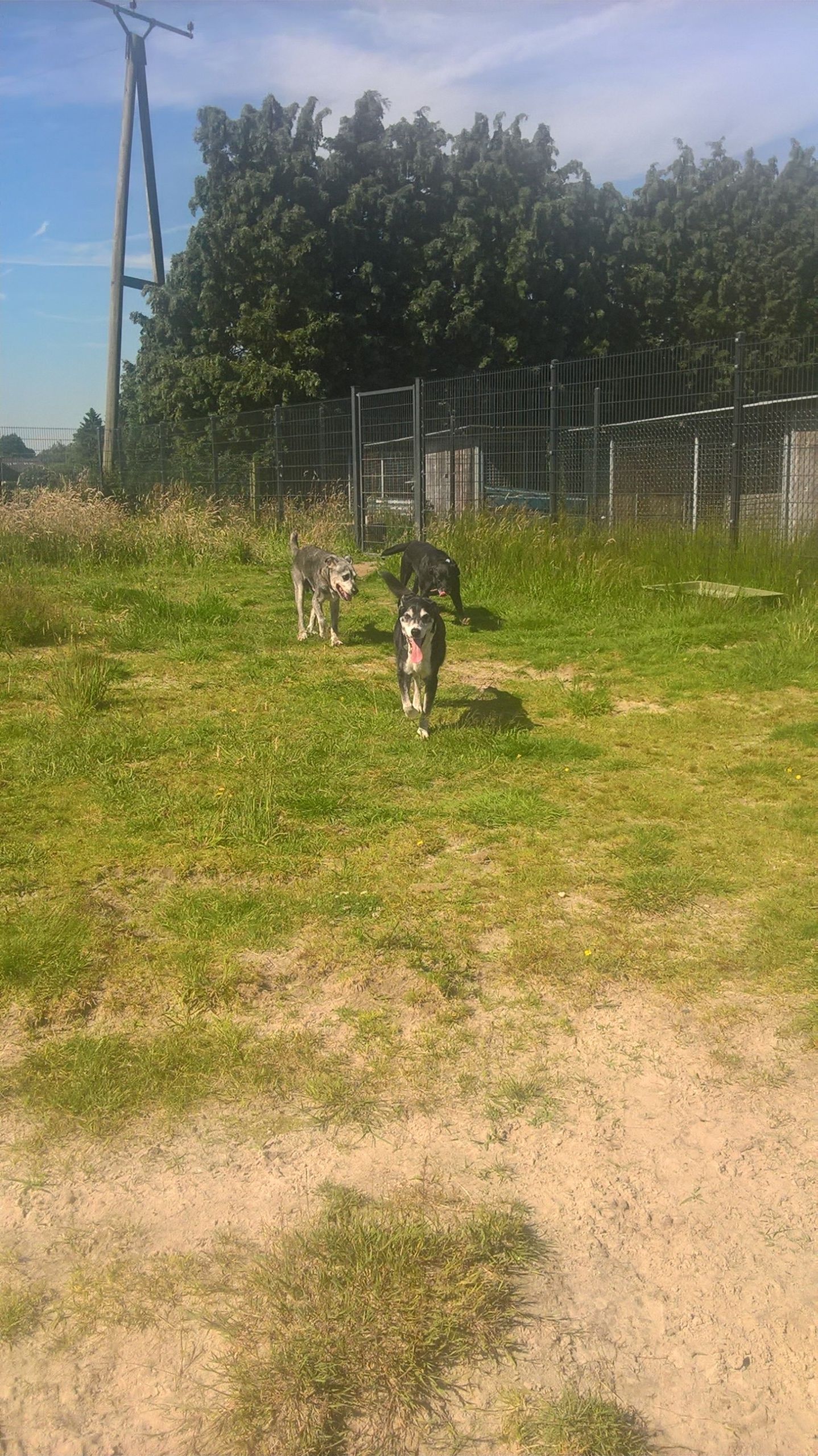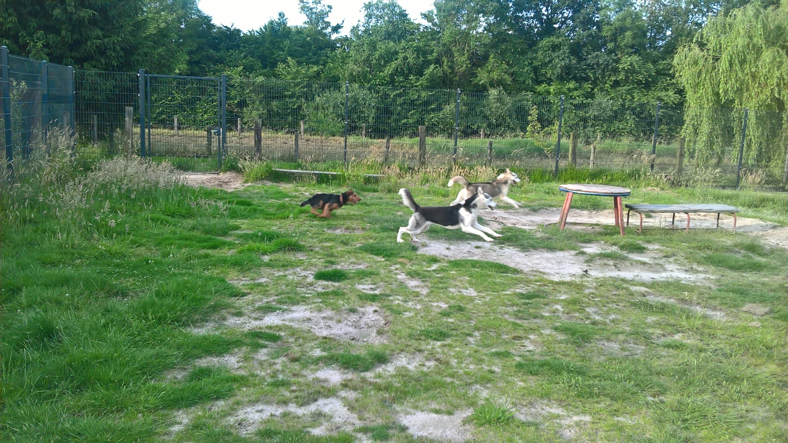 Wenn Sie in der Woche arbeiten müssen, kann ihr Hund in die Tagesbetreuung. Die Tageshunde sind je nach Verträglichkeit in Gruppen aufgeteilt und können auf den Spielwiesen toben.